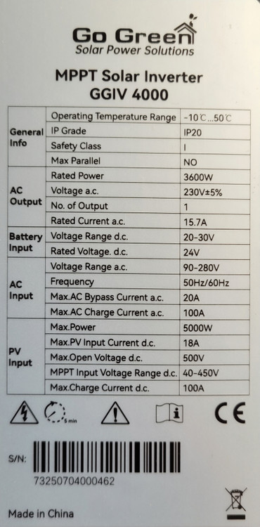 اینورتر خورشیدی تمام سینوسی Go Green مدل GGIV 4000 (3600W/24V)
