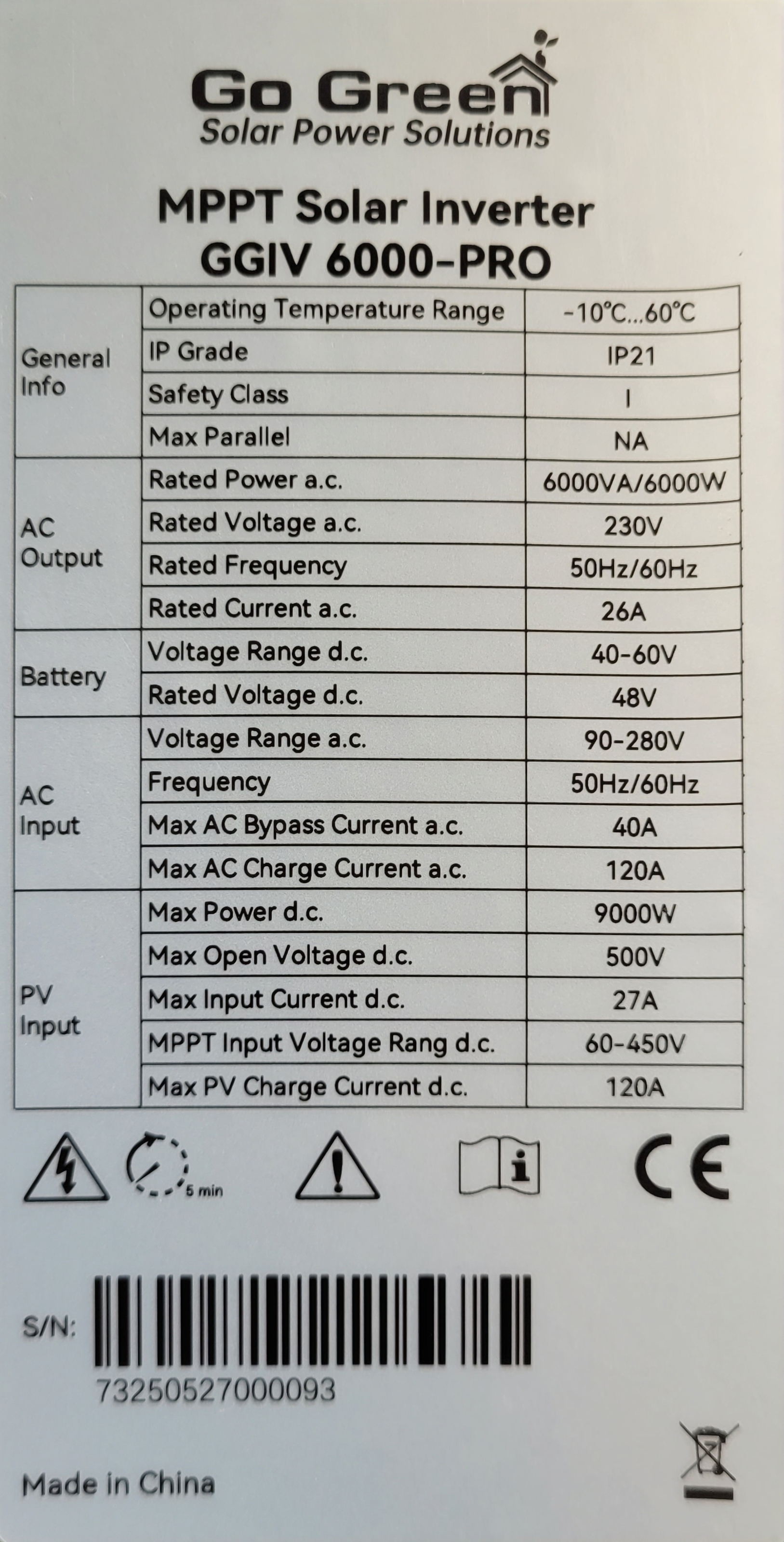 اینورتر خورشیدی تمام سینوسی ۶ کیلووات Go Green مدل GGIV 6000-PRO