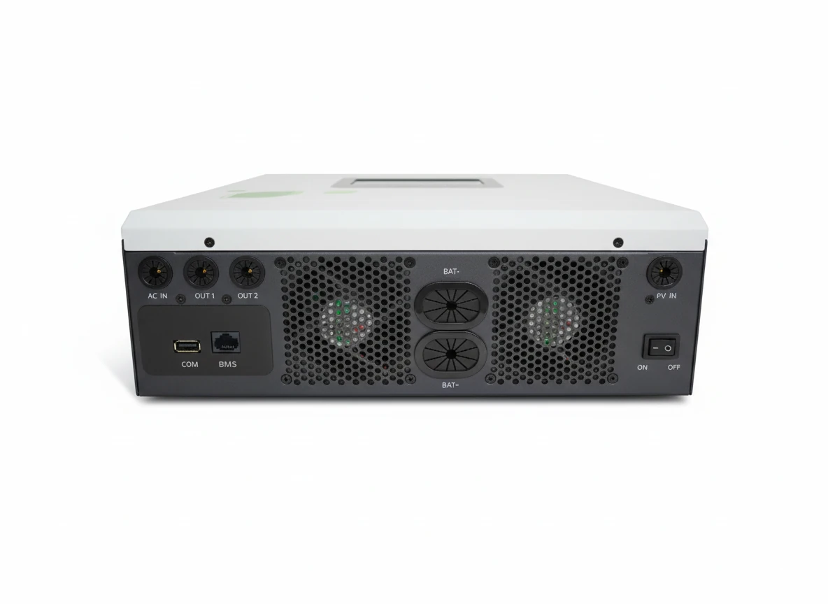 - جریان شارژ ۱۲۰ آمپر: این دستگاه دارای یکی از قویترین شارژرهای داخلی است که میتواند باتریهای ۴۸ ولت را با جریان ۱۲۰ آمپر (از طریق خورشید یا برق شهر) شارژ کند. این ویژگی برای زمانهایی که نیاز به شارژ سریع دارید حیاتی است.