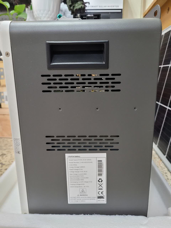 این مدل با ولتاژ نامی 25.6 ولت و ظرفیت 205 آمپر، قادر است 5.2 کیلووات ساعت انرژی را در خود ذخیره کند که برای تامین برق یک خانه باغ، ویلا یا سیستمهای برق اضطراری اداری بسیار مناسب است.
