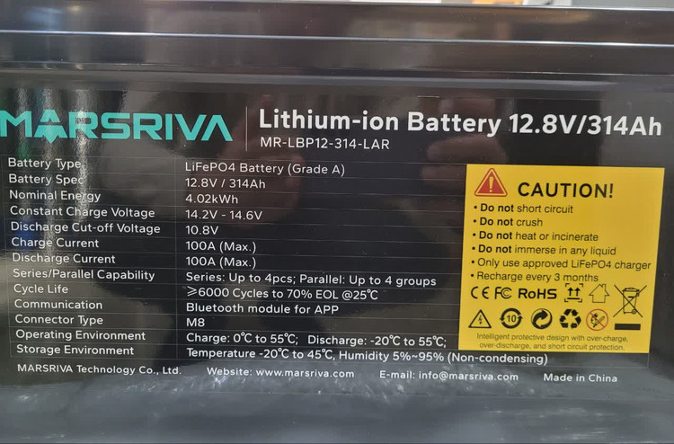 باتری لیتیوم فسفات هوشمند MARSRIVA مدل 12.8V 314Ah (با قابلیت بلوتوث)