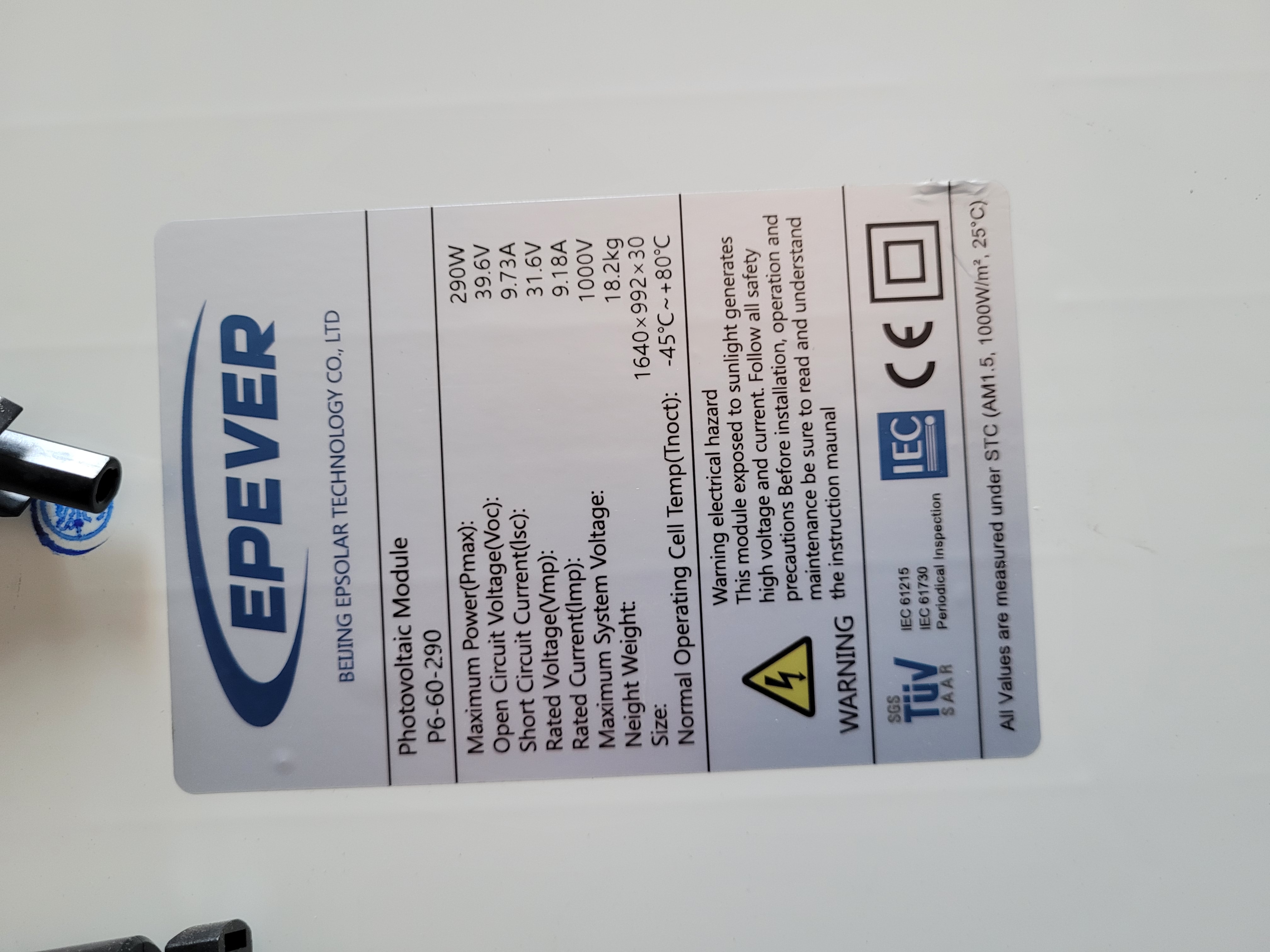 - حداکثر ولتاژ سیستم: 1000V