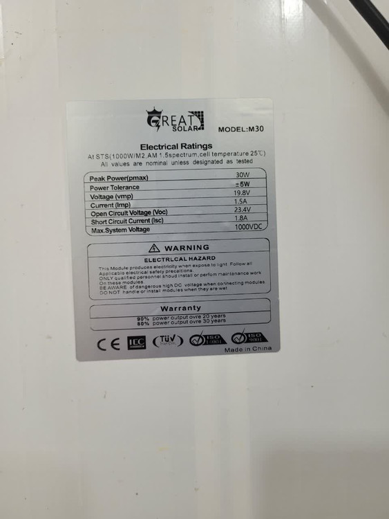 پنل خورشیدی Great Solar مدل M30 یک پنل کوچک، سبک و کارآمد است که برای کاربردهای قابلحمل، پروژههای DIY، سیستمهای روشنایی، شارژ باتریهای 12 ولت و تجهیزات کممصرف طراحی شده است. این پنل با استفاده از سلولهای باکیفیت و استانداردهای بینالمللی، بازدهی مناسبی ارائه میدهد و انتخابی مقرونبهصرفه برای مصرفکنندگان خانگی و صنعتی محسوب میشود.